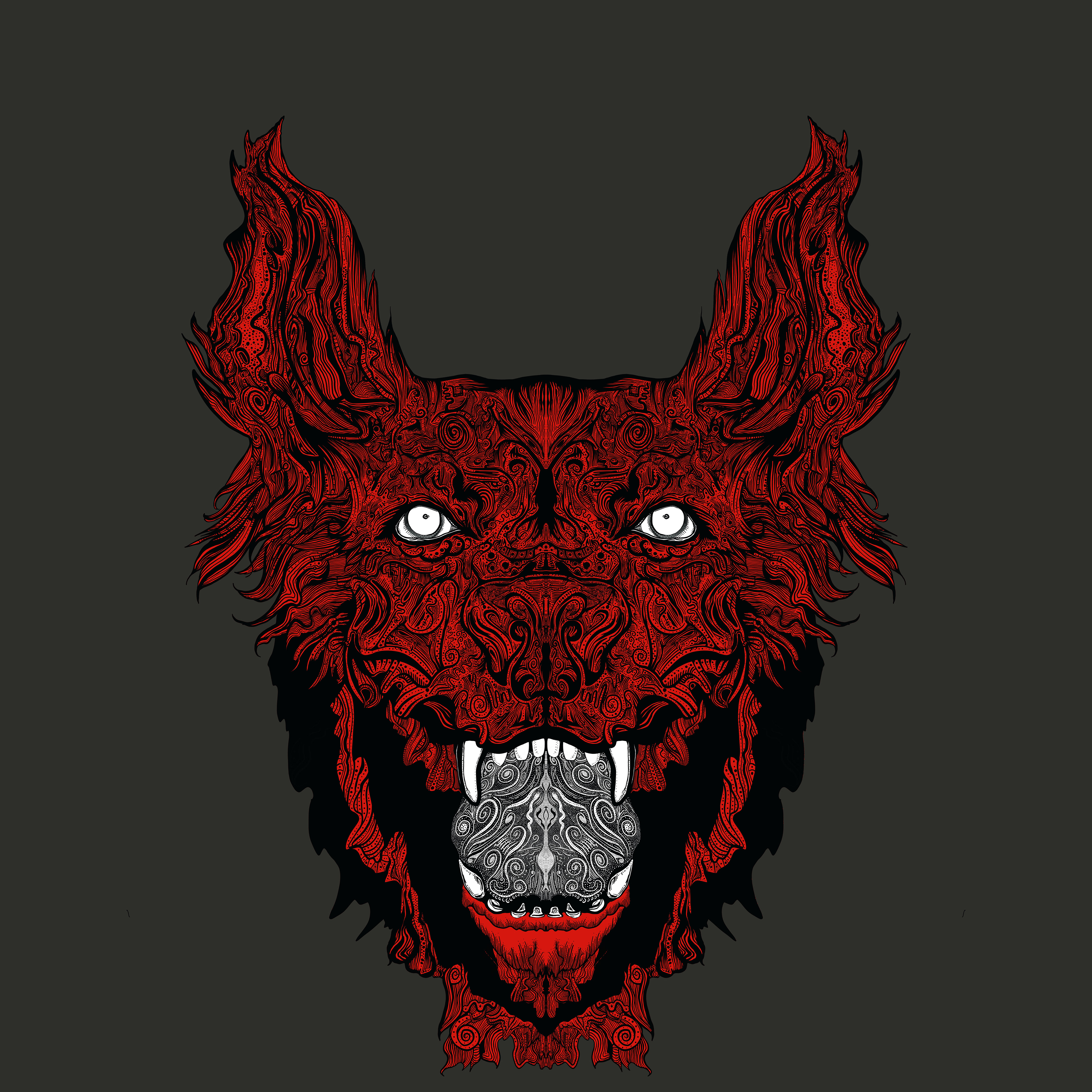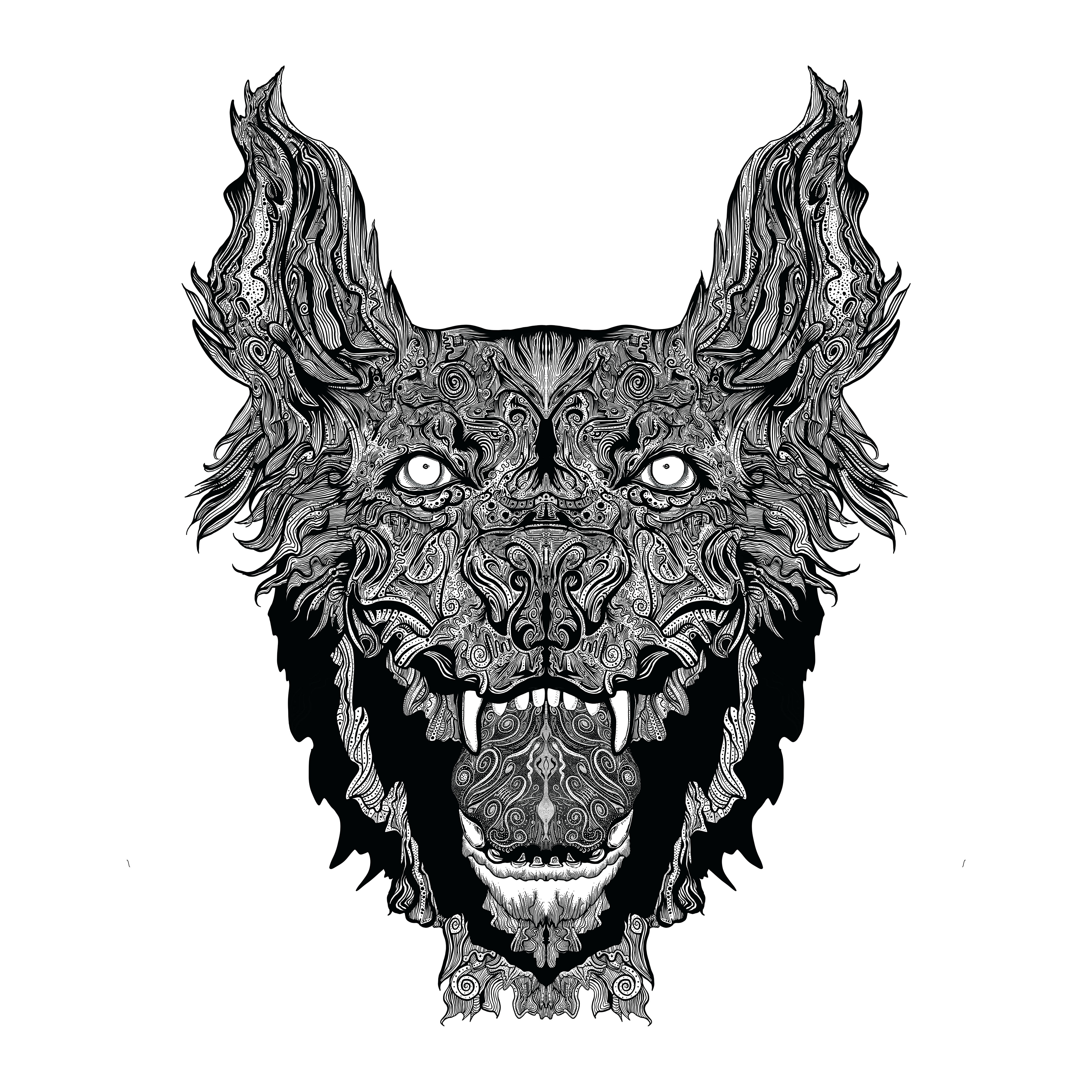 symmetrical wolf illustration drawn with an apple pencil on procreate.